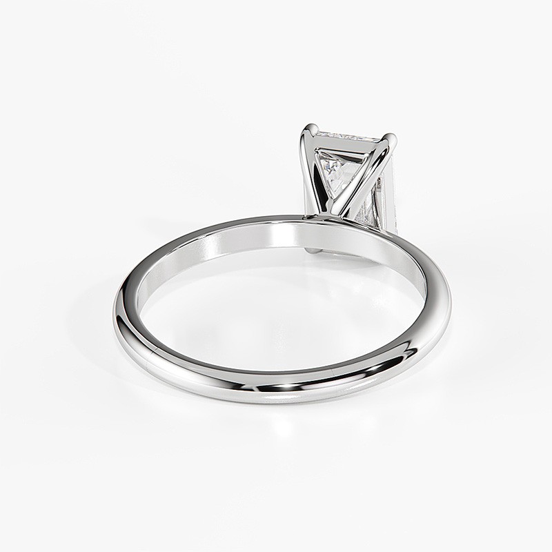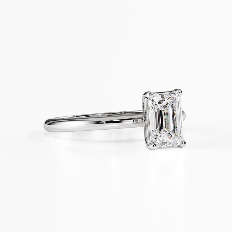 Le solitaire Émeraude est une bague de fiançailles intemporelle, raffinée et épurée, sublimant l’éclat d’un Diamant Emeraude de laboratoire d’exception.