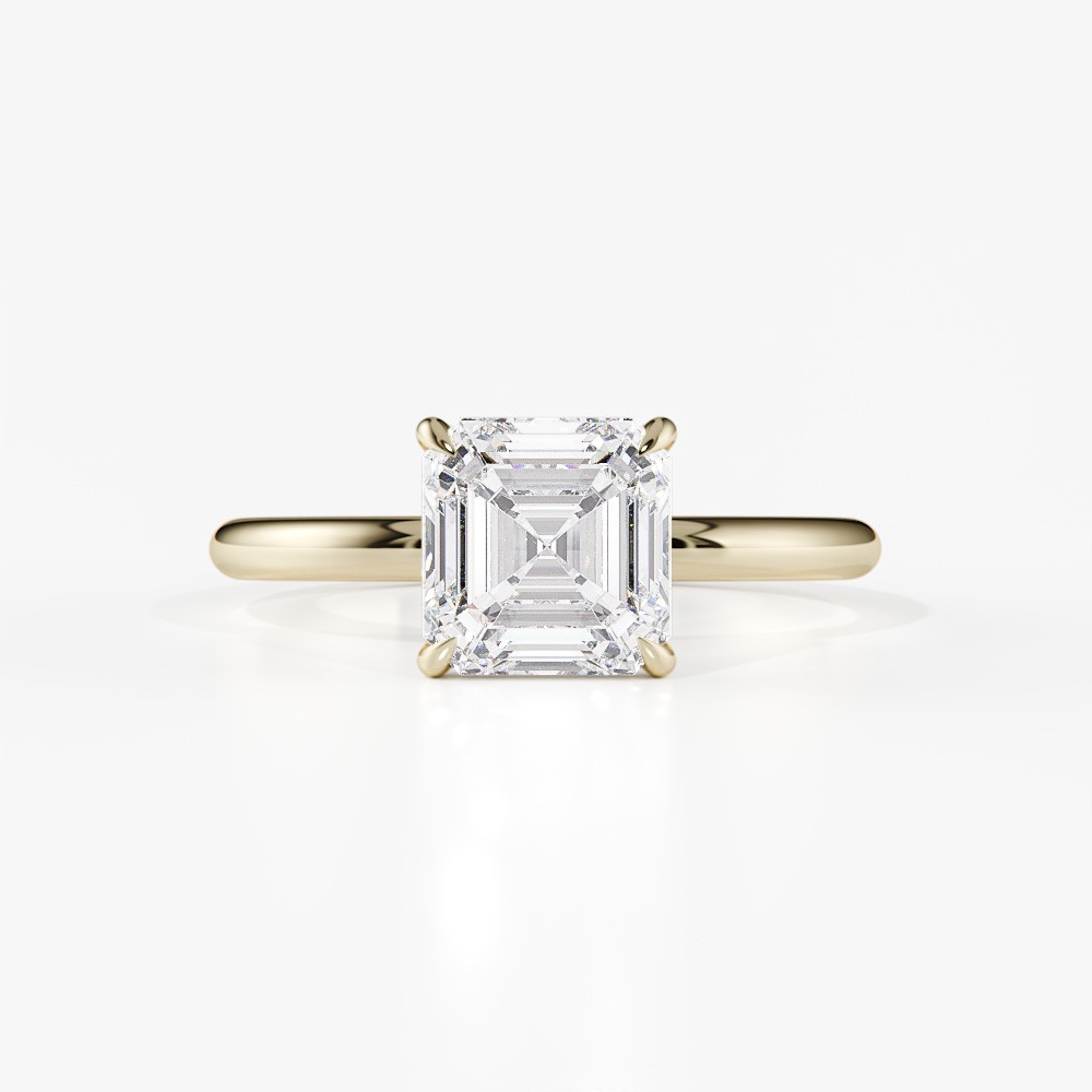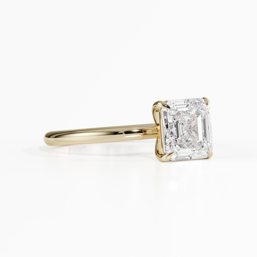 Le SOLITAIRE ASSCHER est une bague de fiançailles emblématique, simple et élégante, qui met en valeur un Diamant de laboratoire unique. Ses facettes en escalier créent un éclat profond et hypnotique, symbole d’un amour éternel.