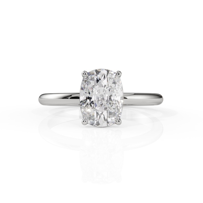Le solitaire Coussin Allongé est une bague de fiançailles emblématique, simple et élégante, qui met en valeur un diamant de laboratoire unique.