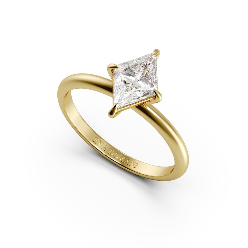 Le Solitaire Losange est né d’une envie de bousculer les codes classiques de la joaillerie. Sa taille singulière révèle une géométrie rare, impossible à obtenir dans la nature. Cette liberté permet une création plus audacieuse, plus expressive. Chaque facette est pensée pour capter la lumière autrement. Le Losange affirme une élégance moderne, assumée et distinctive. Une création Eva Domani, pour celles et ceux qui osent la différence.