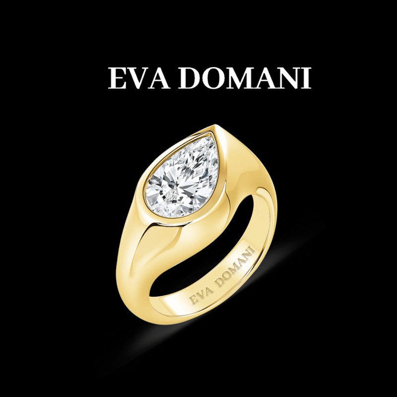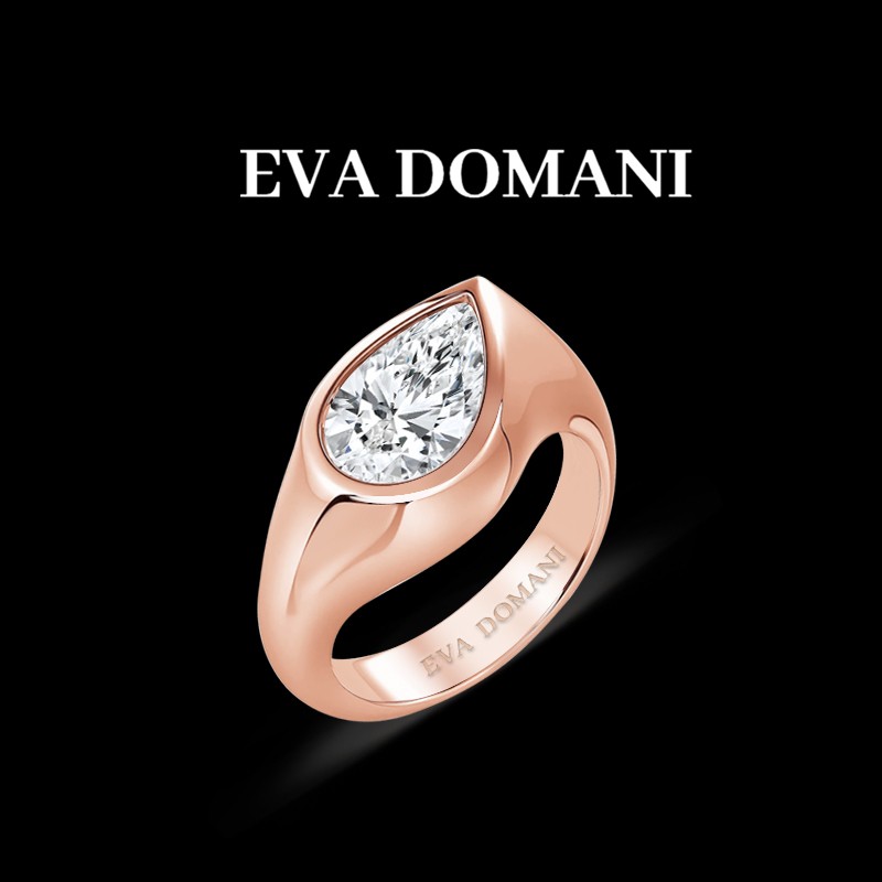 j’ai imaginé cette bague comme une mise en lumière radicale du diamant taille poire, en osant une monture qui l’encadre au lieu de l’effacer. elle célèbre l’audace de celles qui choisissent une pièce forte, différente, et profondément lumineuse.