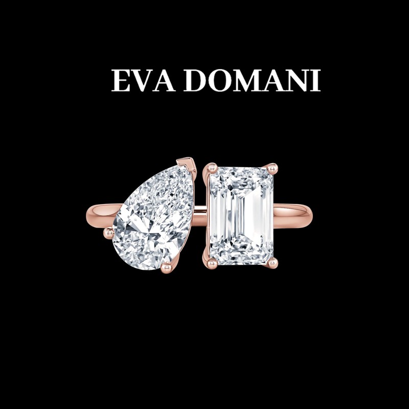 un Diamant Taille Poire de laboratoire rencontre un Diamant Taille Émeraude de laboratoire dans un équilibre moderne et audacieux.