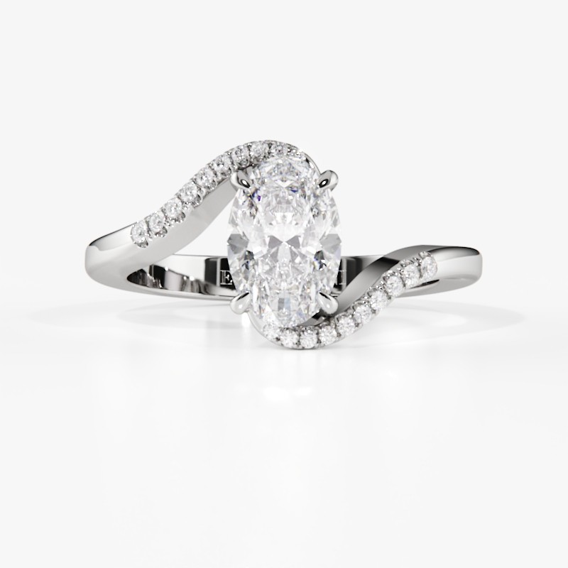 La monture se distingue par ses lignes aériennes et son design légèrement enveloppant, qui accompagne la pierre avec délicatesse. Un pavage fin vient souligner l’ensemble, renforçant l’éclat du diamant sans jamais l’alourdir. Chaque détail est travaillé pour offrir une bague élégante, contemporaine et intemporelle.