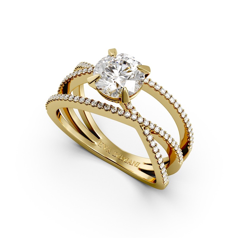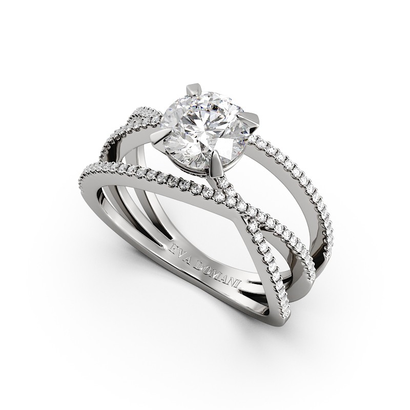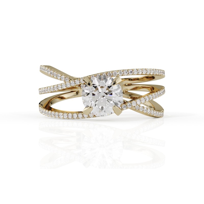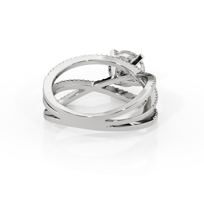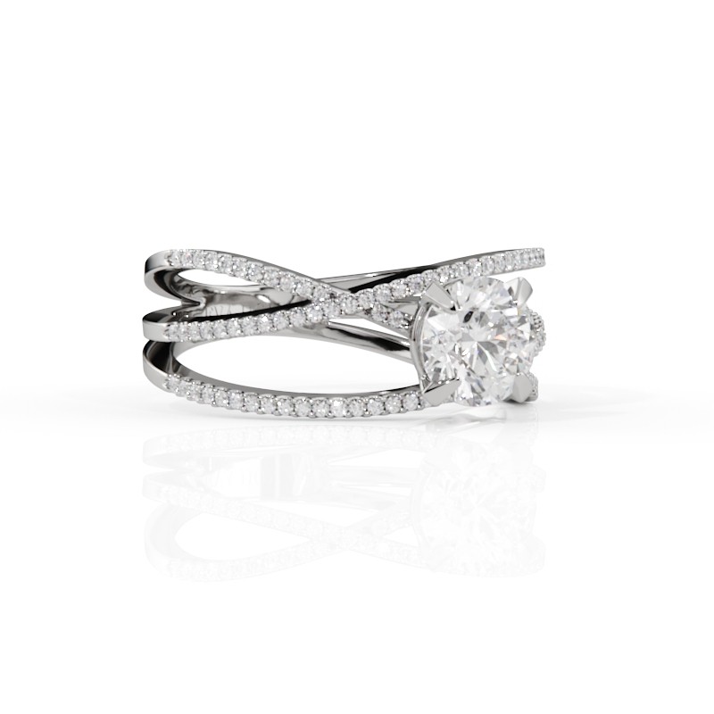 La monture se distingue par ses lignes aériennes et son design légèrement enveloppant, qui accompagne la pierre avec délicatesse. Un pavage fin vient souligner l’ensemble, renforçant l’éclat du diamant sans jamais l’alourdir. Chaque détail est travaillé pour offrir une bague élégante, contemporaine et intemporelle.