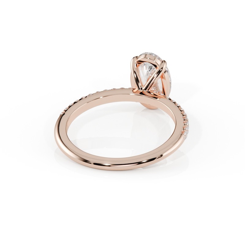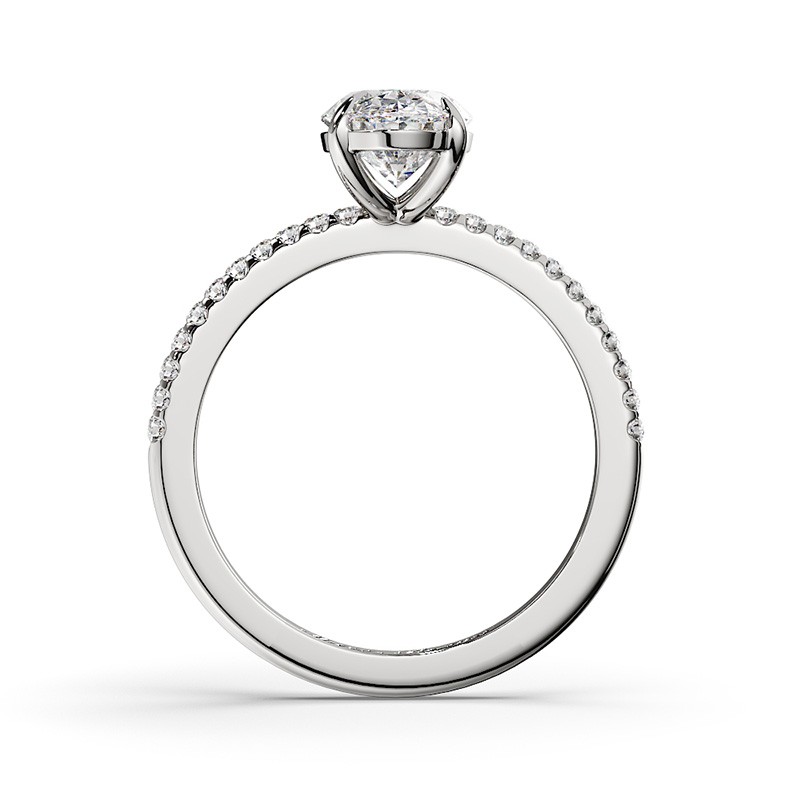 La monture se distingue par ses lignes aériennes et son design légèrement enveloppant, qui accompagne la pierre avec délicatesse. Un pavage fin vient souligner l’ensemble, renforçant l’éclat du diamant sans jamais l’alourdir. Chaque détail est travaillé pour offrir une bague élégante, contemporaine et intemporelle.
