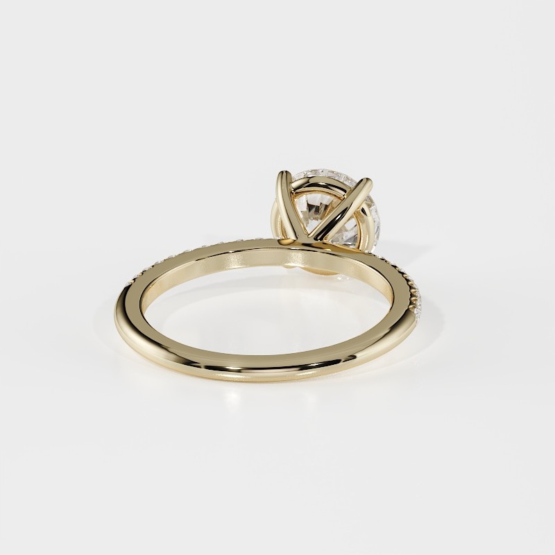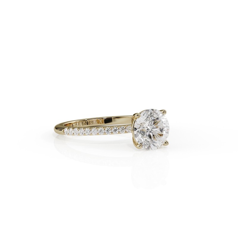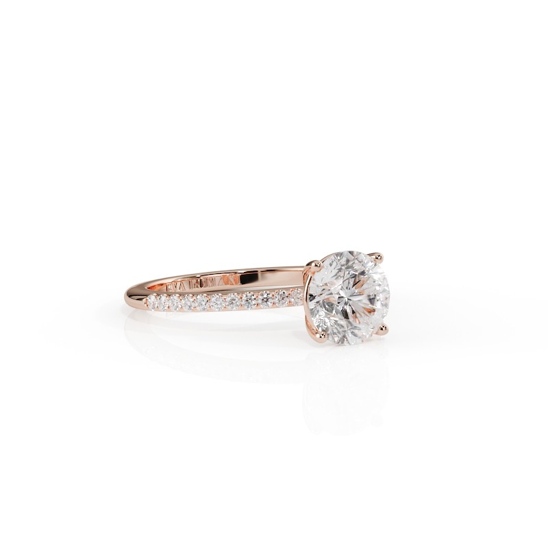 La monture se distingue par ses lignes aériennes et son design légèrement enveloppant, qui accompagne la pierre avec délicatesse. Un pavage fin vient souligner l’ensemble, renforçant l’éclat du diamant sans jamais l’alourdir. Chaque détail est travaillé pour offrir une bague élégante, contemporaine et intemporelle.