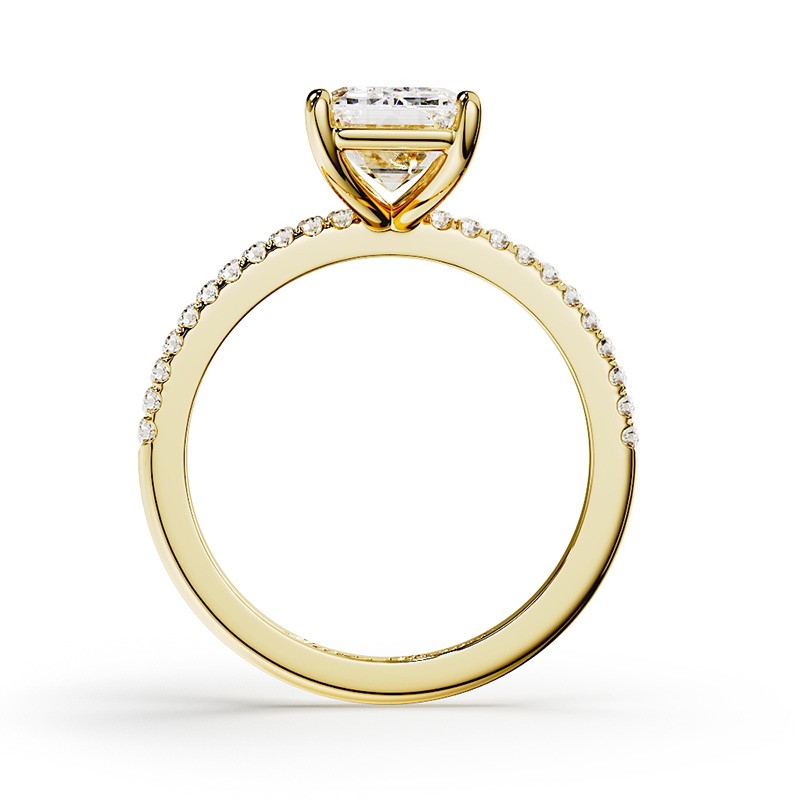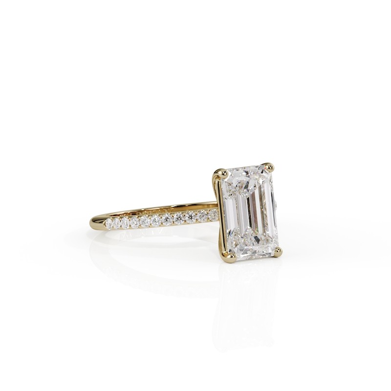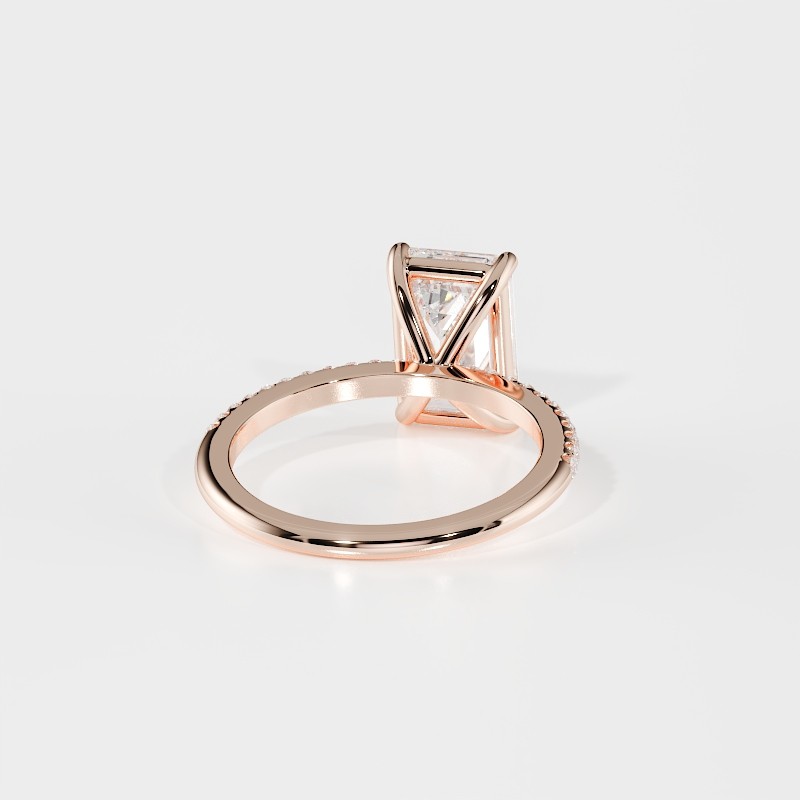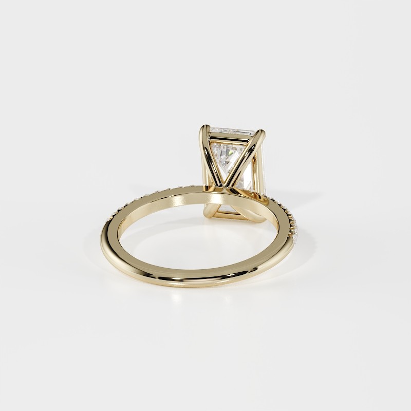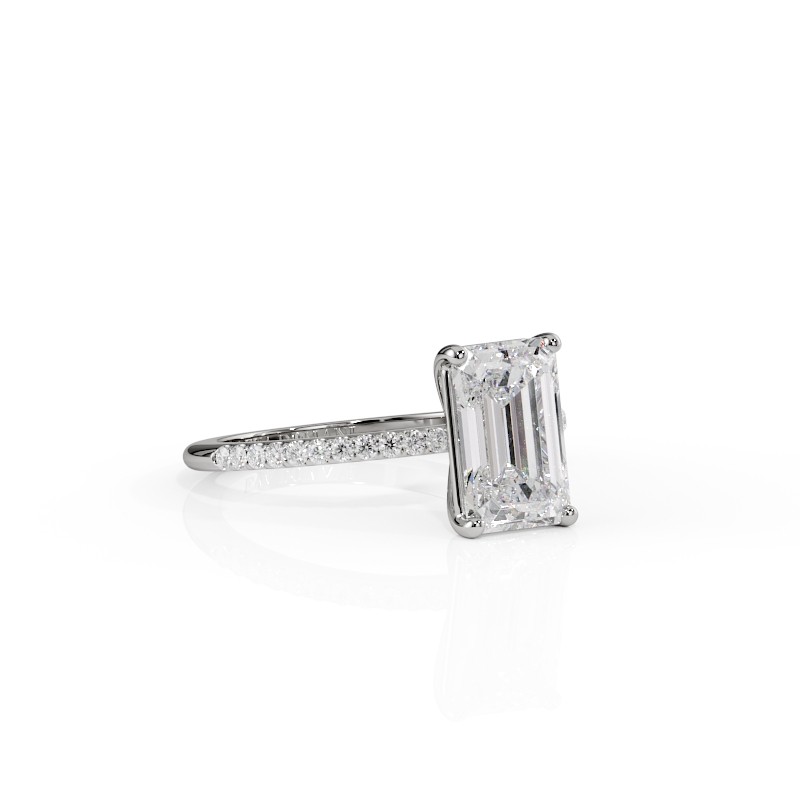 La monture se distingue par ses lignes aériennes et son design légèrement enveloppant, qui accompagne la pierre avec délicatesse. Un pavage fin vient souligner l’ensemble, renforçant l’éclat du diamant sans jamais l’alourdir. Chaque détail est travaillé pour offrir une bague élégante, contemporaine et intemporelle.