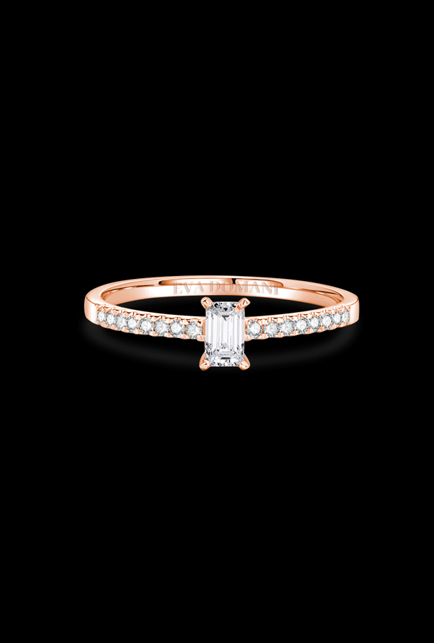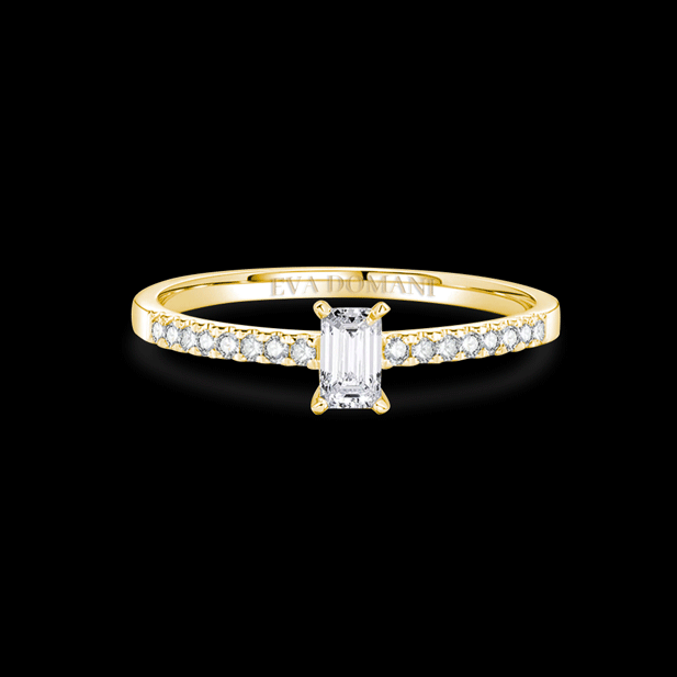 L'Evameraude incarne l’élégance et la modernité dans un design raffiné et intemporel. Réalisée en or 18K ou en platine 950/1000, elle offre une teinte douce et chaleureuse qui sublime la peau et confère une allure romantique. En son centre, un diamant taille émeraude est mis en valeur par un serti griffe délicat, soulignant sa pureté et sa brillance exceptionnelle. La monture est rehaussée d’un pavage de diamants sur le corps de la bague, apportant une touche supplémentaire de scintillement et de sophistication. Parfaitement équilibrée entre simplicité et éclat, cette bague est le choix idéal pour symboliser un amour unique et éternel. Chaque détail reflète l’excellence de l’artisanat et le soin apporté à sa création, faisant de ce bijou une pièce inoubliable pour célébrer les plus beaux moments de la vie.