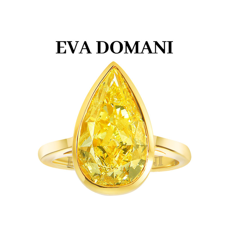 Cette création signée Eva Domani incarne l’harmonie parfaite entre la pureté du design et l’intensité du jaune doré, évoquant la finesse et l’effervescence du champagne. Un bijou d’exception, symbole de prestige